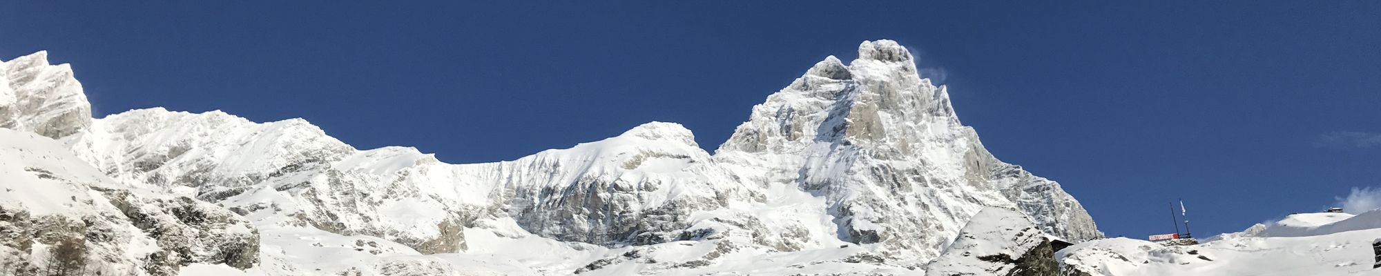 There is an outdoor terrace with a table and bench with a view of the mountains. The property is located at the main road that goes to Cervinia.